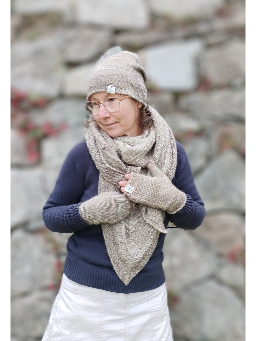 Ručně pletená čepice "s příběhem" z ručně předené příze ze 100% české ovčí vlny. Příze na čepici je ručně zpracována od vyčesaného rouna ovečky, přes ruční barvení, po ruční předení příze a následné ruční pletení. Čepice z příze sepředené z nabízených česanců jsou označeny přímo číslem daného česance. Čepice je velmi teplá , lehounká, měkká a nekouše, tedy mně nekouše, ale mohou se najít citlivější výjimky.