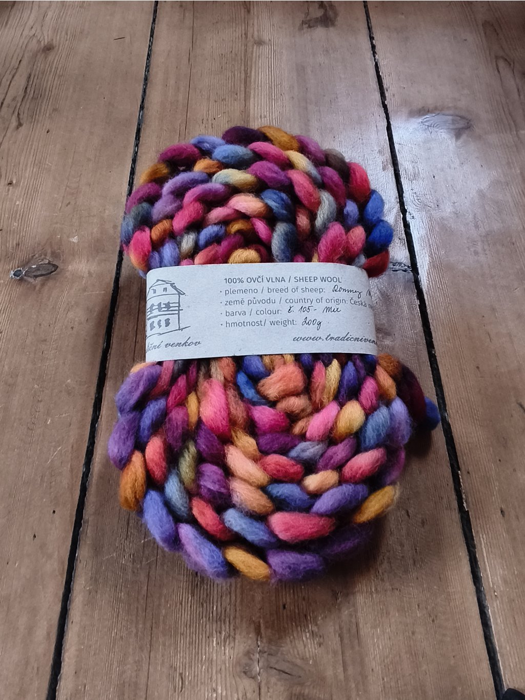 Česanec české ovčí vlny plemene Romney Marsh, mnou ručně barvený.