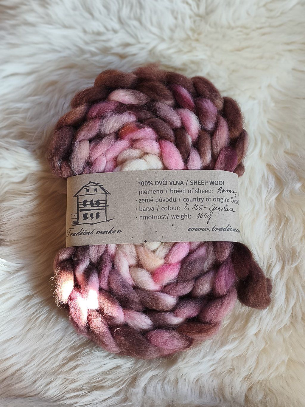 Ručně barvený česanec vlny z českých oveček plemene Romney Marsh zpracovaný v malé manufaktuře - tzv. vlněném mlýnu a potom mnou ručně nabarvený,  Česanec je zpracovaný formou "pin drafted roving", takže je krásně nadýchaný, ne tak hutný jako průmyslové česance, není ho potřeba rozdělovat ani povytahovat a velmi dobře se z něj přede.