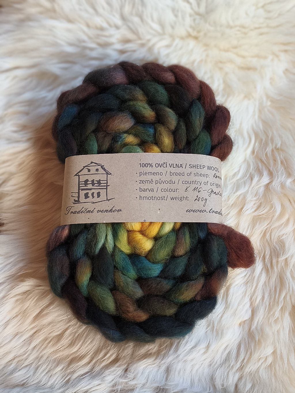 Ručně barvený česanec vlny z českých oveček plemene Romney Marsh zpracovaný v malé manufaktuře - tzv. vlněném mlýnu a potom mnou ručně nabarvený. Česanec je zpracovaný formou "pin drafted roving", takže je krásně nadýchaný, ne tak hutný jako průmyslové česance, není ho potřeba rozdělovat ani povytahovat a velmi dobře se z něj přede.