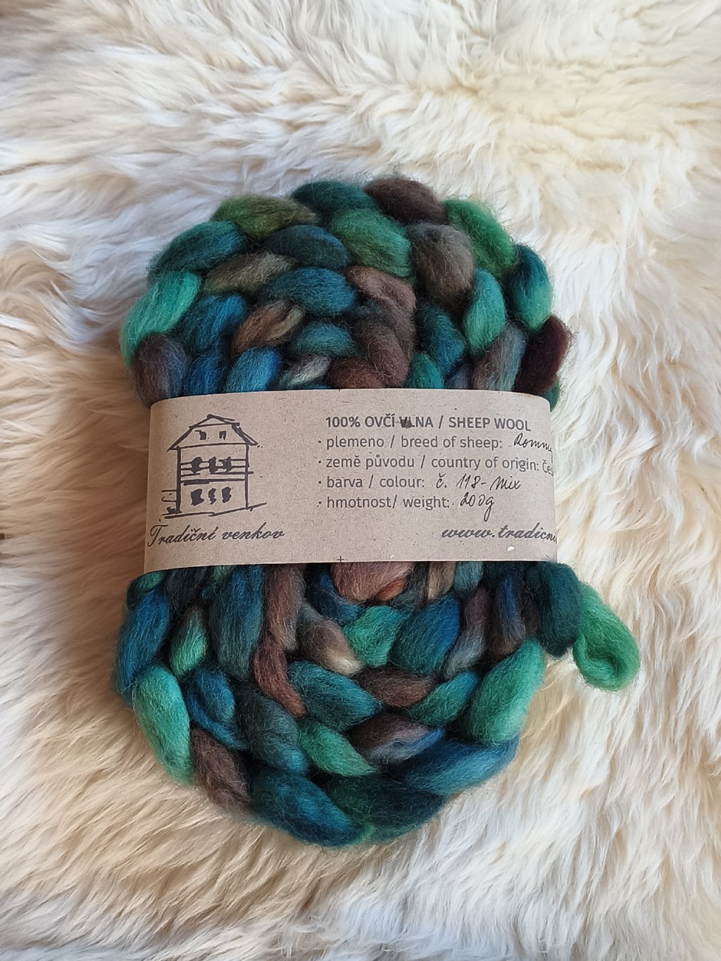 Ručně barvený česanec vlny z českých oveček plemene Romney Marsh zpracovaný v malé manufaktuře - tzv. vlněném mlýnu a potom mnou ručně nabarvený. Česanec je zpracovaný formou "pin drafted roving", takže je krásně nadýchaný, ne tak hutný jako průmyslové česance, není ho potřeba rozdělovat ani povytahovat a velmi dobře se z něj přede.