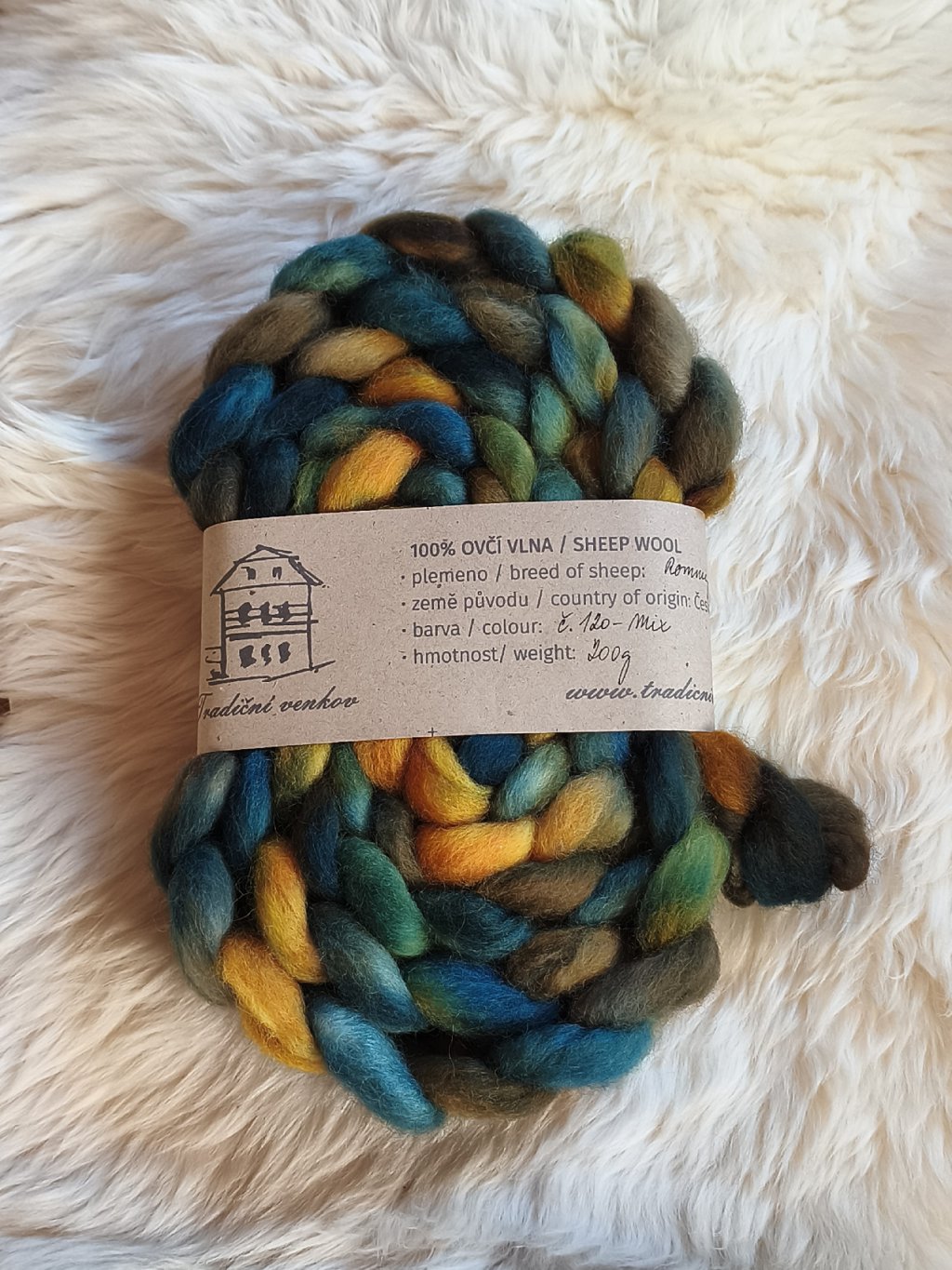 Ručně barvený česanec vlny z českých oveček plemene Romney Marsh.