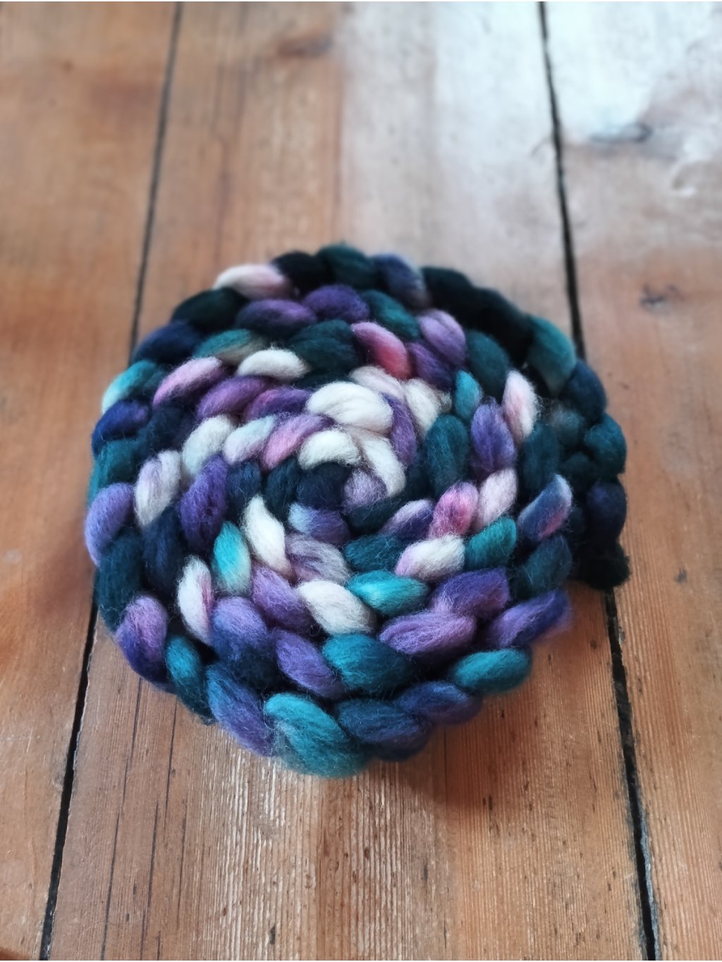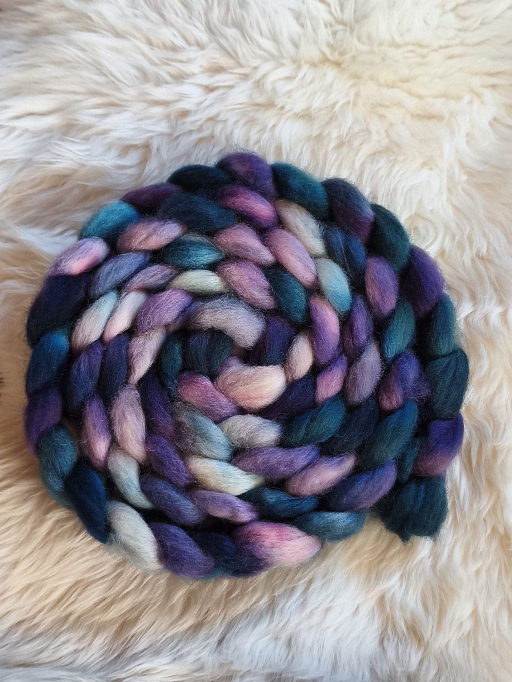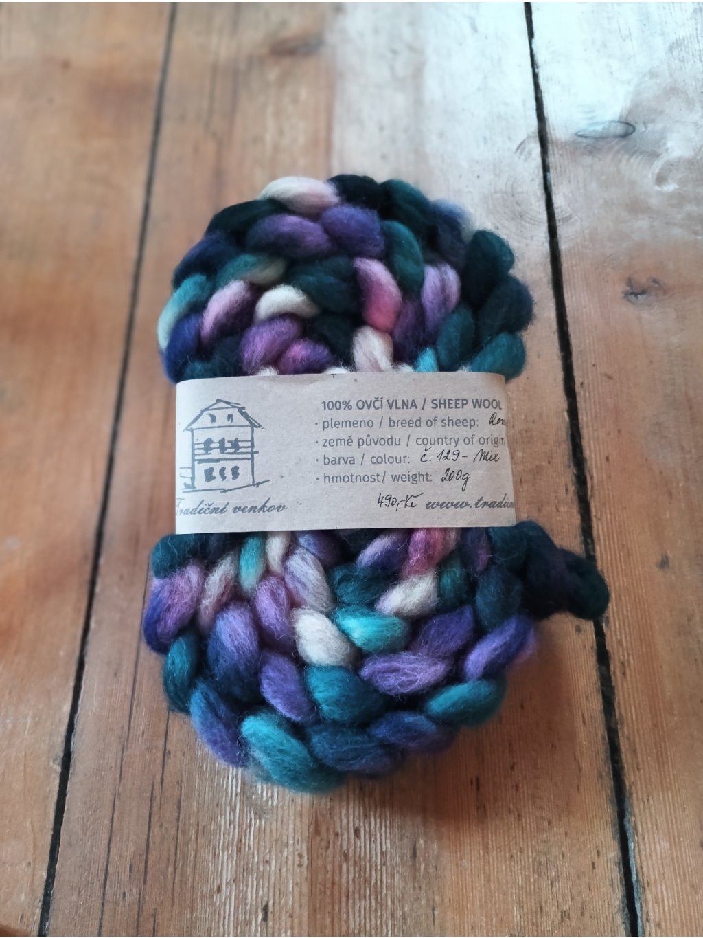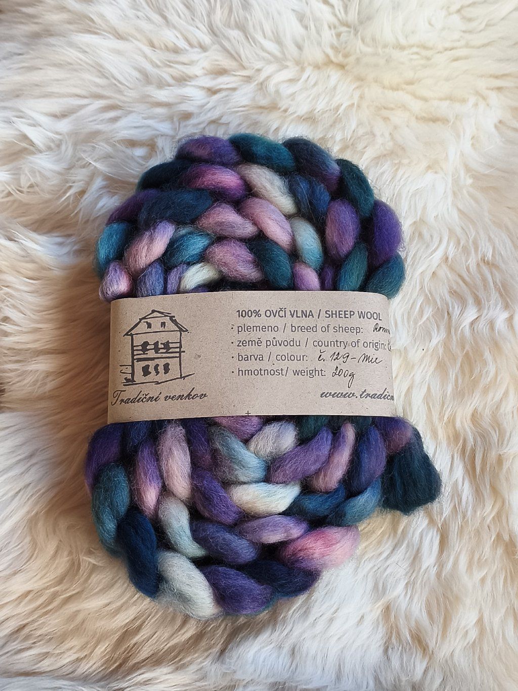 Ručně barvený česanec vlny z českých oveček plemene Romney Marsh zpracovaný v malé manufaktuře - tzv. vlněném mlýnu a potom mnou ručně nabarvený,  Česanec je zpracovaný formou "pin drafted roving", takže je krásně nadýchaný, ne tak hutný jako průmyslové česance, není ho potřeba rozdělovat ani povytahovat a velmi dobře se z něj přede.