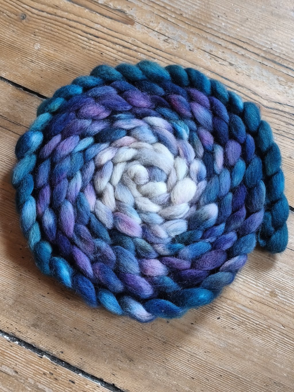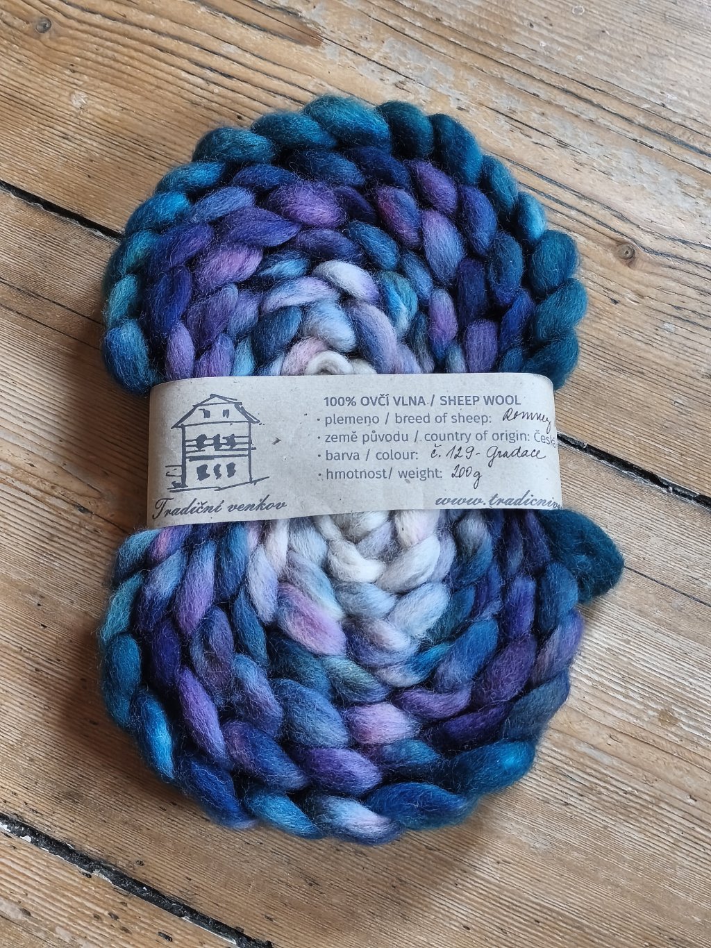 Ručně barvený česanec vlny z českých oveček plemene Romney Marsh zpracovaný v malé manufaktuře - tzv. vlněném mlýnu a potom mnou ručně nabarvený,  Česanec je zpracovaný formou "pin drafted roving", takže je krásně nadýchaný, ne tak hutný jako průmyslové česance, není ho potřeba rozdělovat ani povytahovat a velmi dobře se z něj přede.
