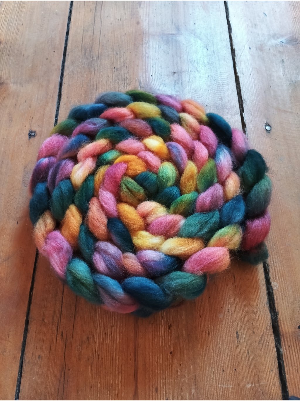 Česanec české ovčí vlny plemene Romney Marsh, mnou ručně barvený.
