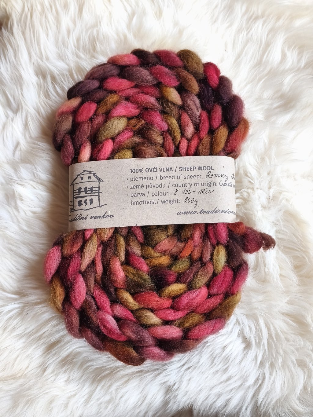Ručně barvený česanec vlny z českých oveček plemene Romney Marsh zpracovaný v malé manufaktuře - tzv. vlněném mlýnu a potom mnou ručně nabarvený,  Česanec je zpracovaný formou "pin drafted roving", takže je krásně nadýchaný, ne tak hutný jako průmyslové česance, není ho potřeba rozdělovat ani povytahovat a velmi dobře se z něj přede.