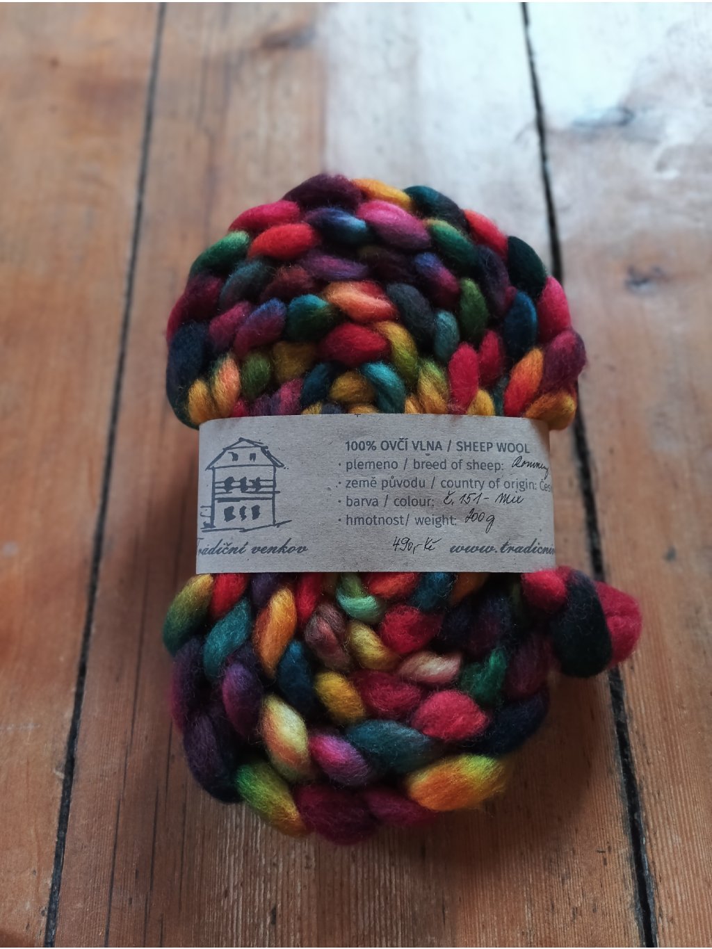 Česanec české ovčí vlny plemene Romney Marsh mnou ručně barvený.