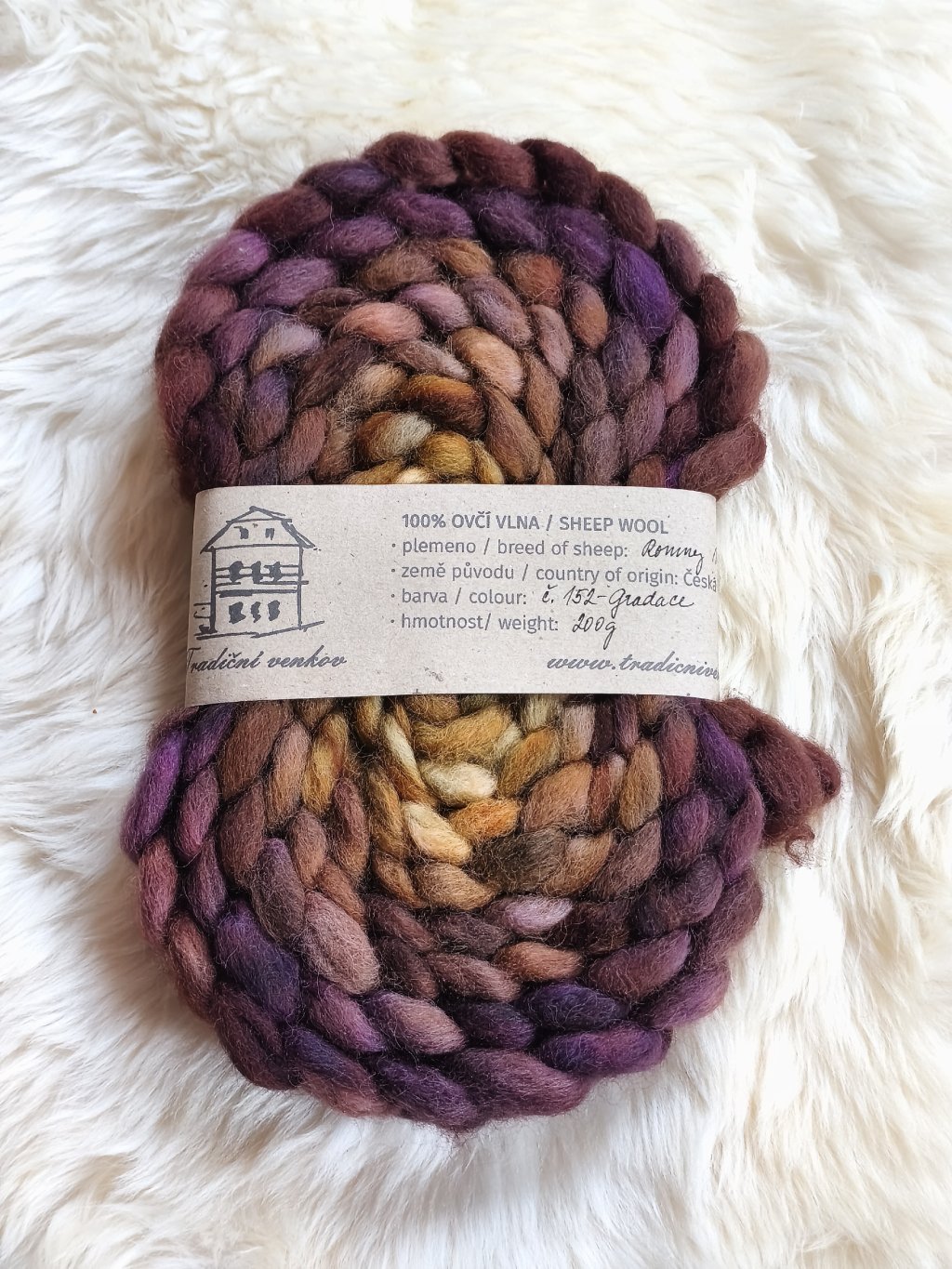 Ručně barvený česanec vlny z českých oveček plemene Romney Marsh zpracovaný v malé manufaktuře - tzv. vlněném mlýnu a potom mnou ručně nabarvený,  Česanec je zpracovaný formou "pin drafted roving", takže je krásně nadýchaný, ne tak hutný jako průmyslové česance, není ho potřeba rozdělovat ani povytahovat a velmi dobře se z něj přede.