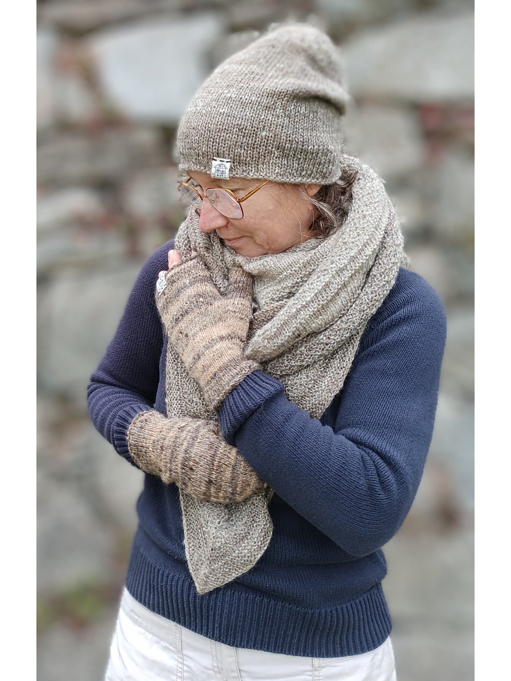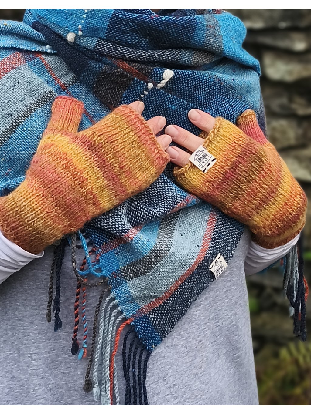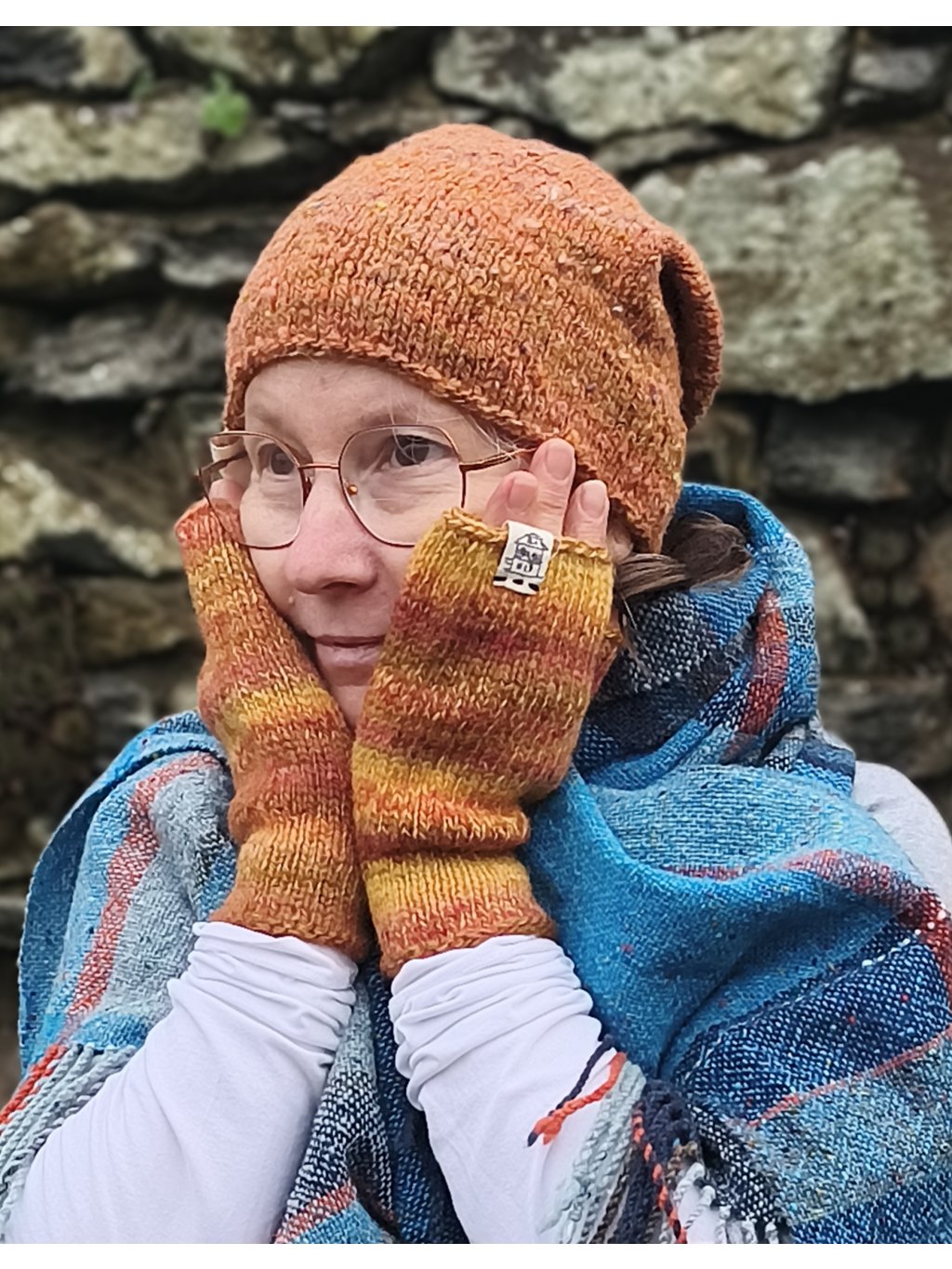 Ručně pletené bezprstové rukavice "s příběhem" z ručně předené příze ze 100% české ovčí vlny. Přízi na rukavice jsem zpracovala ručně od ostříhaného rouna ovečky, přes ruční praní, přírodní barvení, ruční česání po ruční předení příze a následné ruční pletení. Rukavice jsou velmi teplé, lehounké, měkké a nekoušou, tedy mně nekoušou, ale mohou se najít citlivější výjimky.