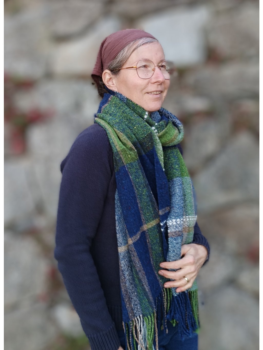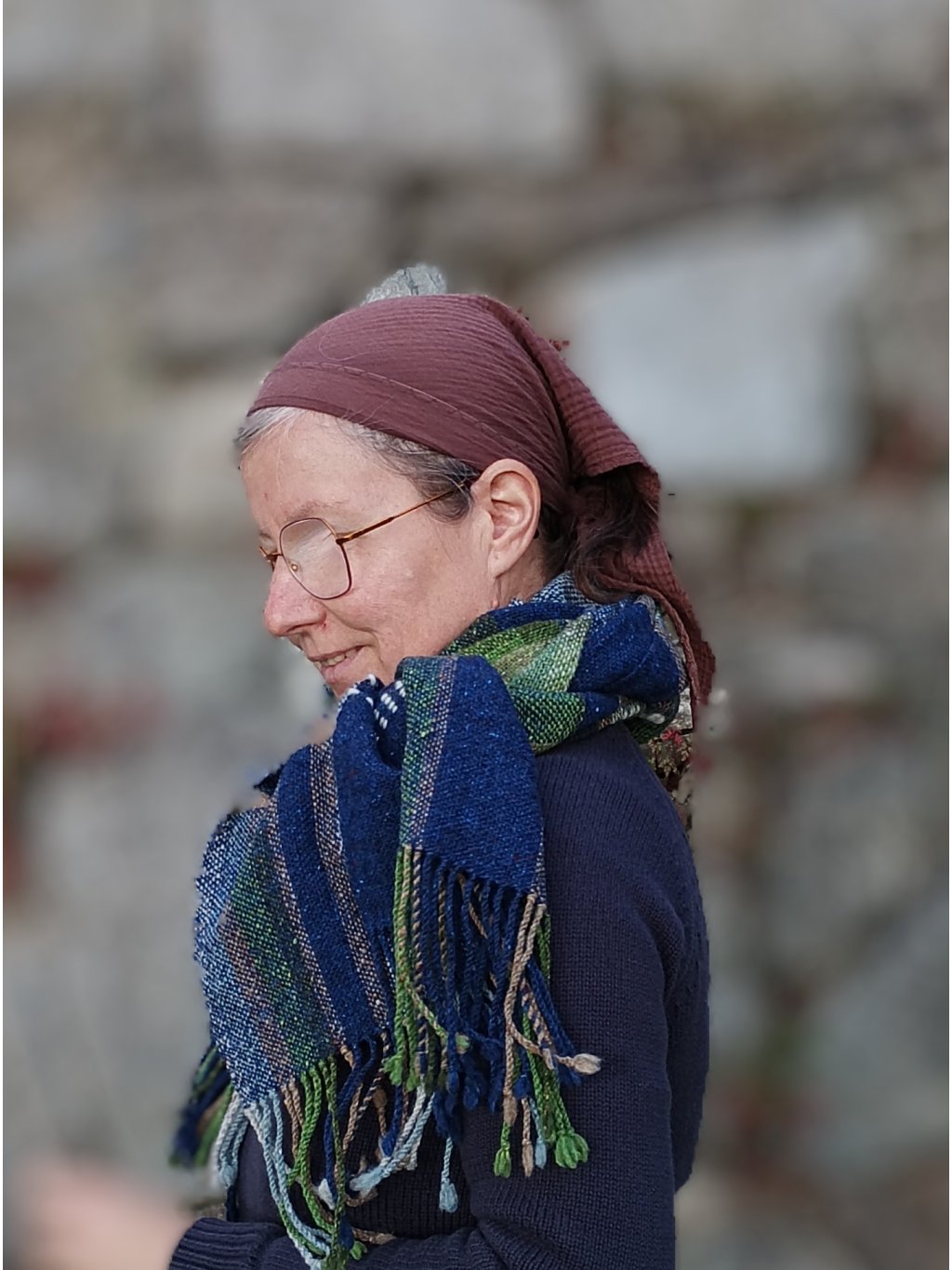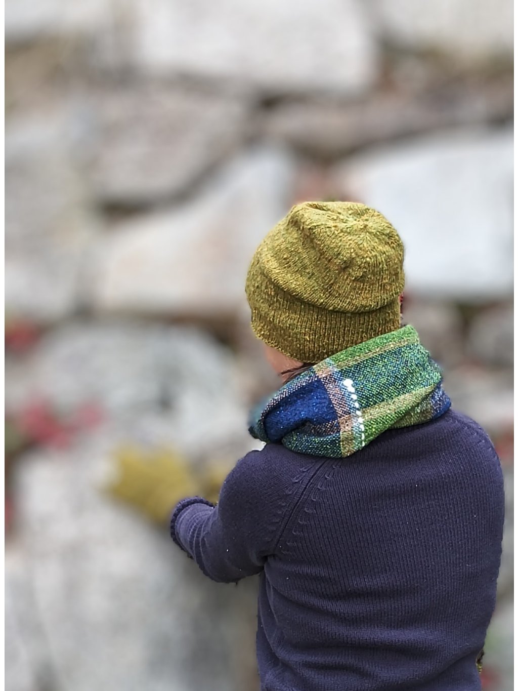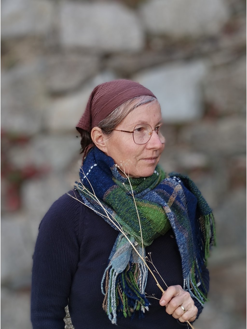 Ručně tkaná šála/pléd z tvídové merino vlny. Barevností připomíná les v podvečer, kdy koruny stromů potemní a obloha přechází pomalu do temně modré, dekorativní vsadky v geometrických linií jsou z ručně předené české ovčí vlny v přírodně bílé. Šála je velmi hřejivá, úžasně měkká a jemná, lehounká a příjemná na dotek, nekouše, ale mohou se najít výjimky s citlivější kůží. Použitý vzor je klasický a tradiční zároveň, osnova i útek jsou ze stejného materiálu a na obou stranách je zakončena kroucenými třásněmi. Barvami i vzorem je vhodná pro jakýkoliv styl a příležitost, pro ženy i muže. Šálu je možné 2 x pohodlně omotat kolem krku, nebo nosit jako pléd přes ramena. Výrobek je již jednou praný!!