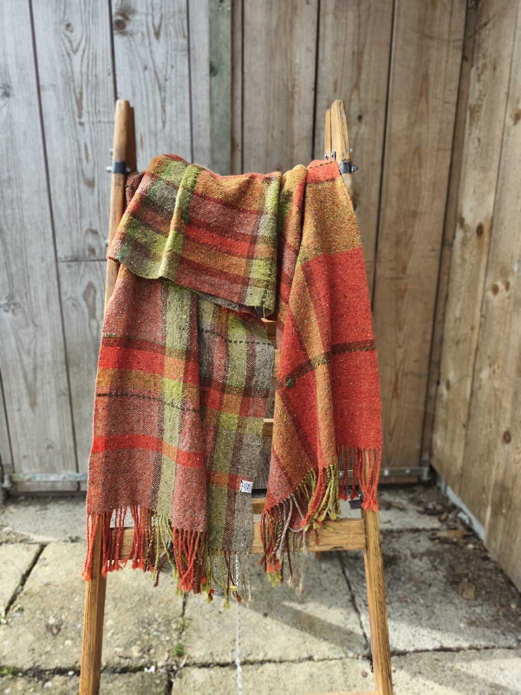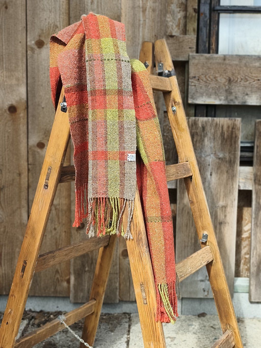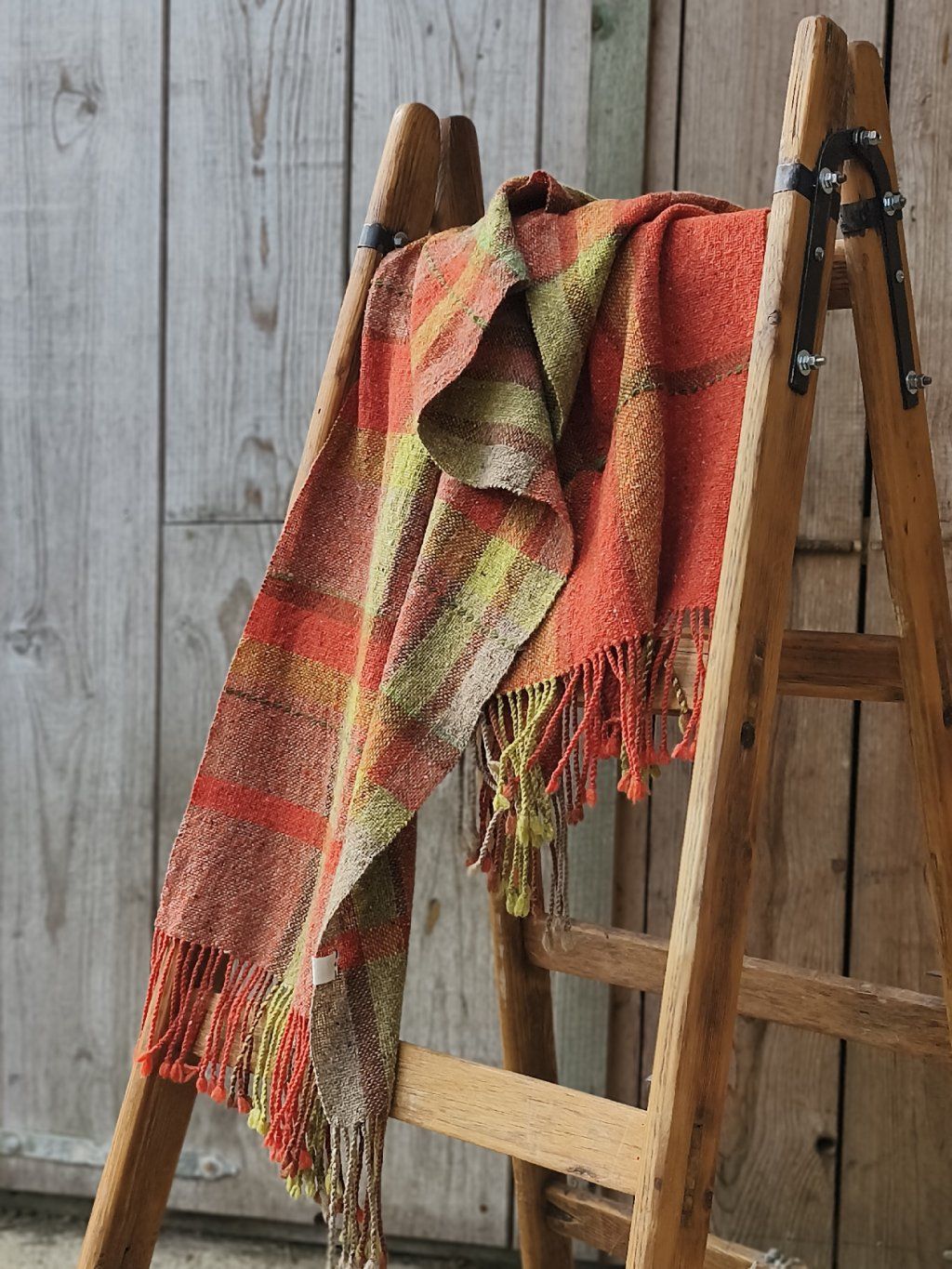Ručně tkaná šála/pléd z tvídové merino vlny. Barevností pro mně znázorňuje pohodu, život s úsměvem, rozzářené oči nad barvami květin a šťavnatou zelení, tak proč se mračit. Dekorativní vsadky jsou z ručně předené tmavě zelené ovčí merino vlny. Šála je velmi hřejivá, úžasně měkká a jemná, lehounká a příjemná na dotek, nekouše, ale mohou se najít výjimky s citlivější kůží. Použitý vzor je klasický a tradiční zároveň, osnova i útek jsou ze stejného materiálu a na obou stranách je zakončena kroucenými třásněmi. Barvami i vzorem je vhodná pro jakýkoliv styl a příležitost. Šálu je možné 2 x pohodlně omotat kolem krku, nebo nosit jako pléd přes ramena. Výrobek je již jednou praný!!