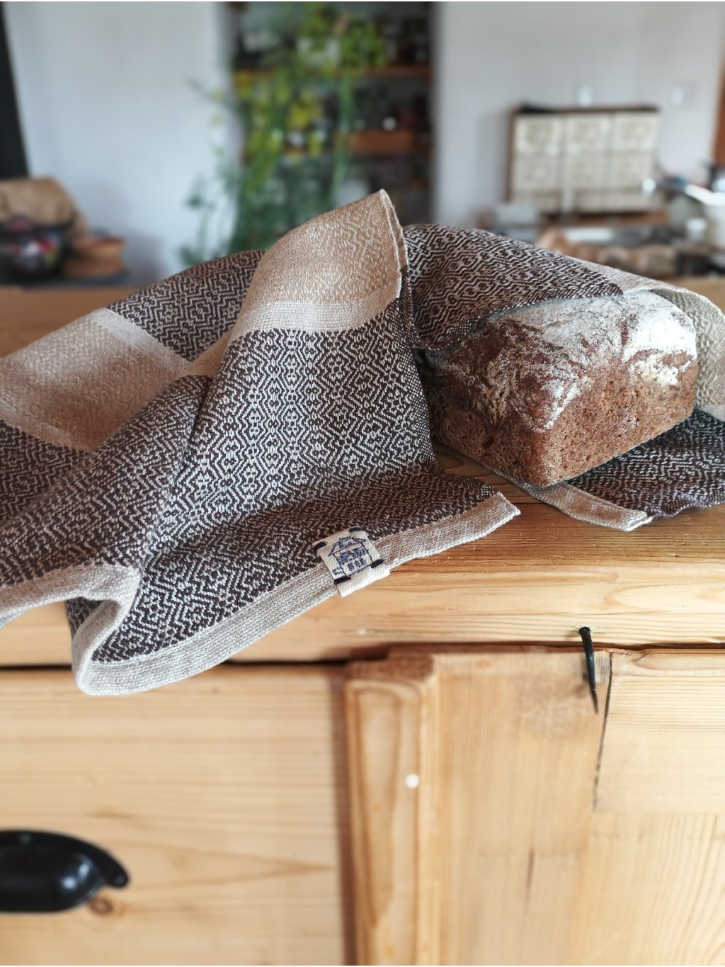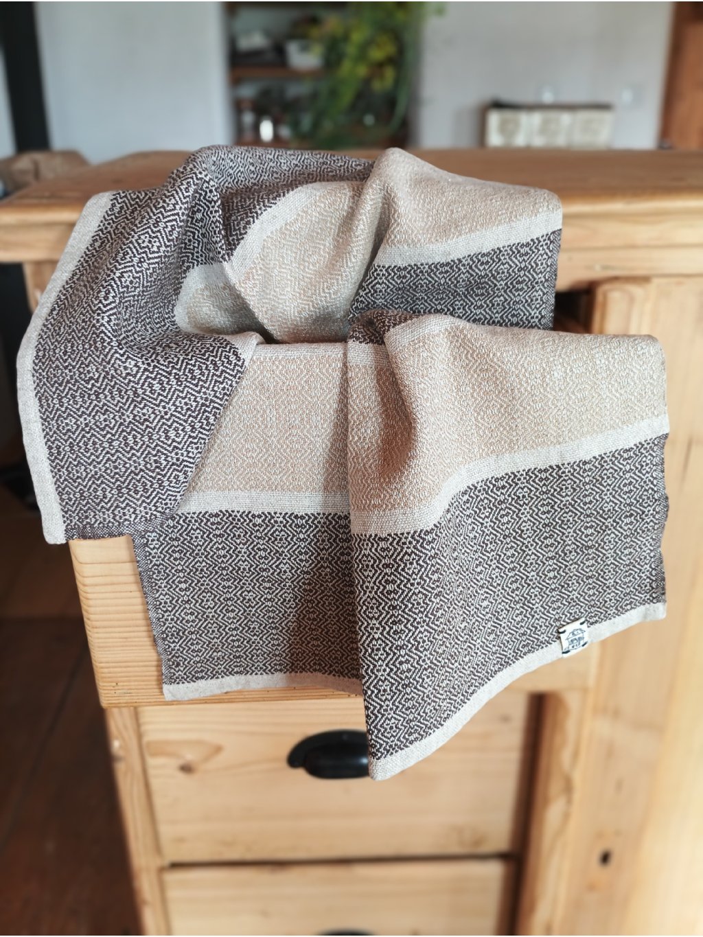 Použít se dá jako středový ubrus, dečka, nebo ručník, či utěrka na nádobí nebo na uchování domácího chleba. V rubové straně je schované poutko upletené ze stejné barvy. Vzor je v podstatě oboustranný, použitelný jak z lícu, tak z rubu. Použitý vzor je nadčasový i nadstylový, prostě se hodí všude.