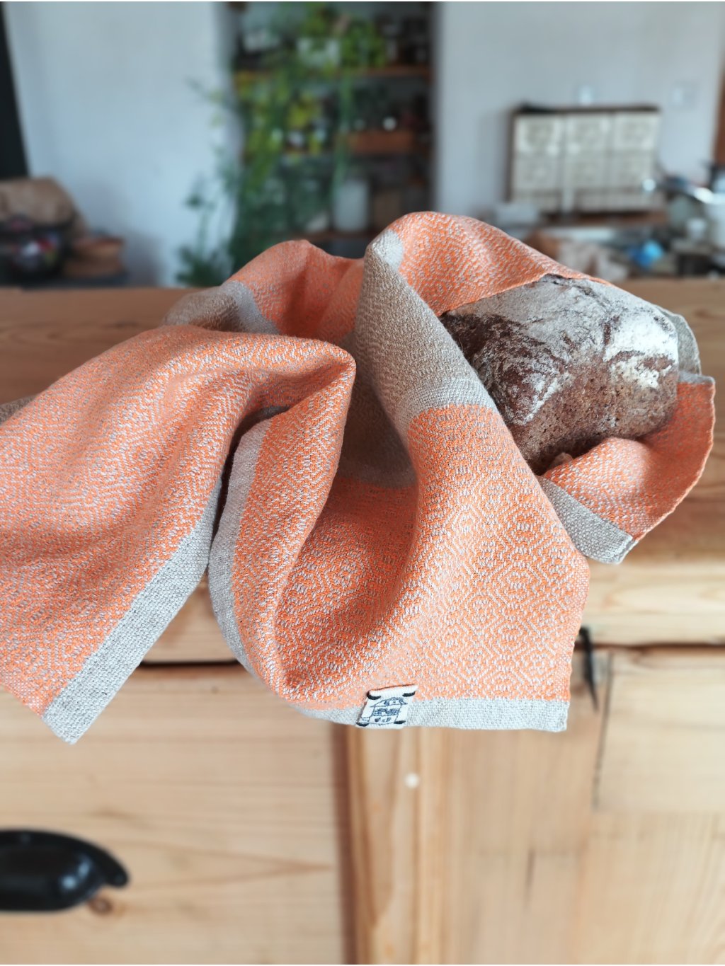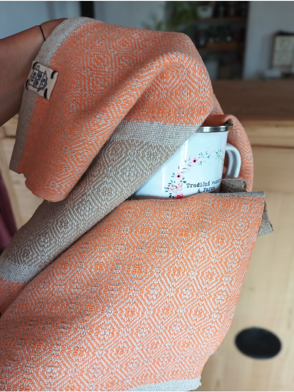 Ručně tkaný kousek bytového užitného i dekorativního textilu.