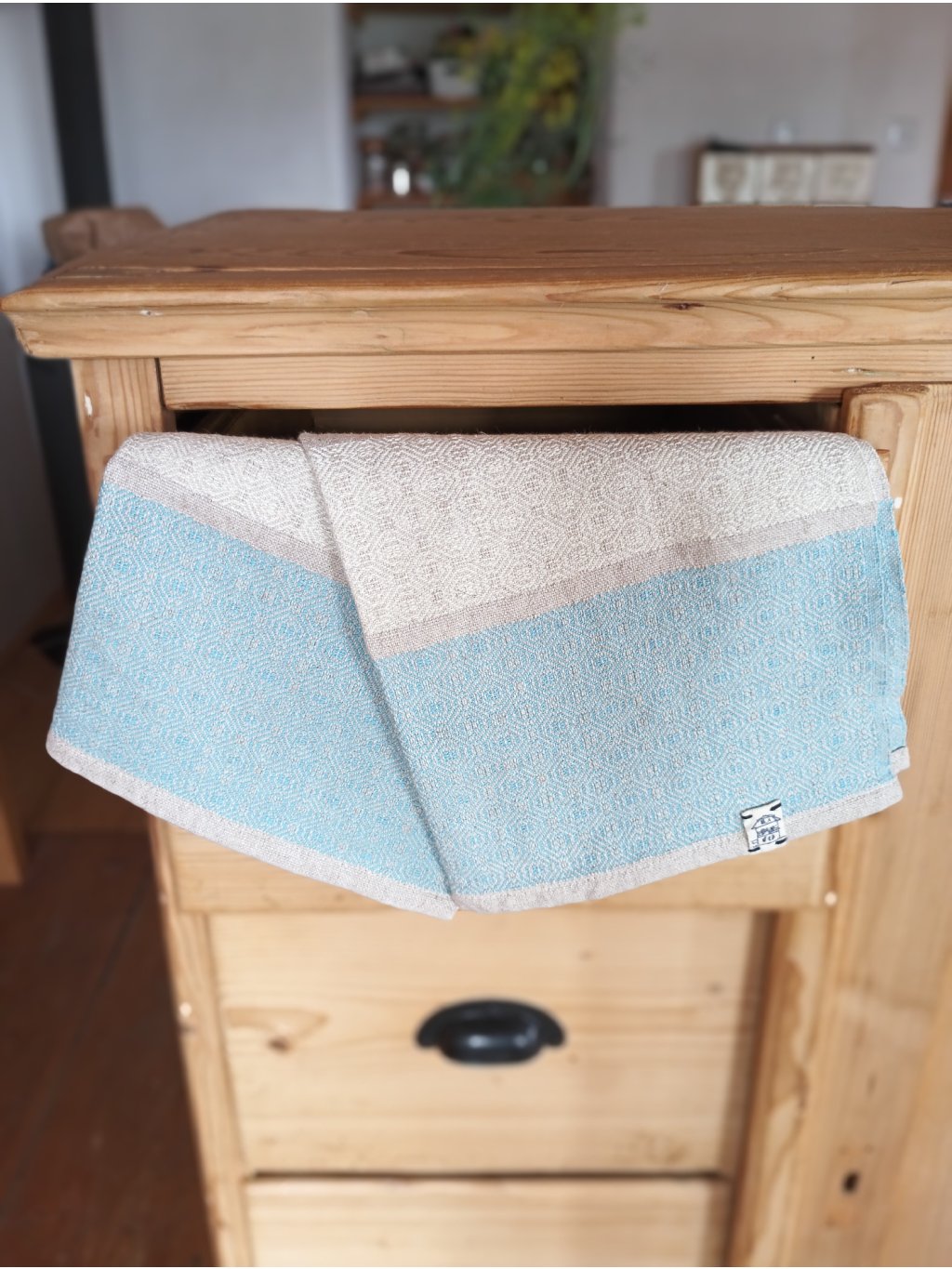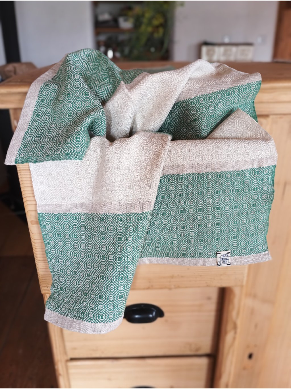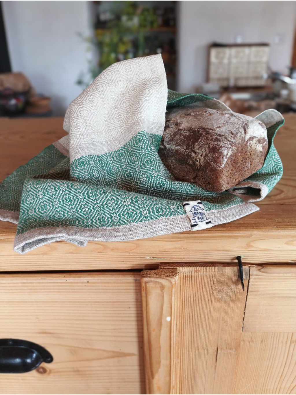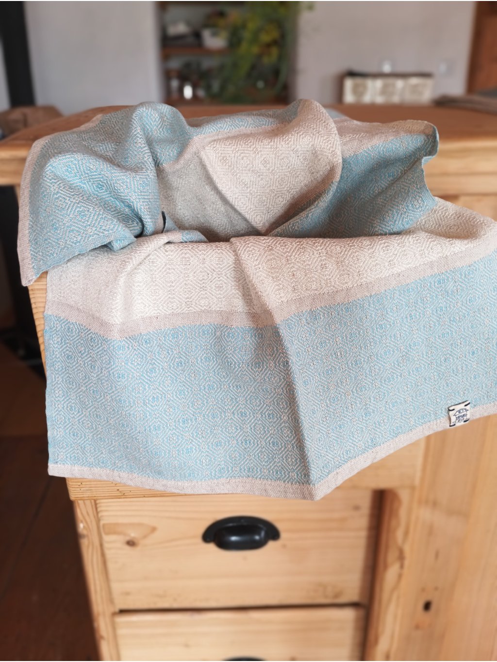 Použít se dá jako středový ubrus, dečka, nebo ručník, či utěrka na nádobí nebo na uchování domácího chleba. V rubové straně je schované poutko upletené ze stejné barvy. Vzor je v podstatě oboustranný, použitelný jak z lícu, tak z rubu. Použitý vzor je nadčasový i nadstylový, prostě se hodí všude.