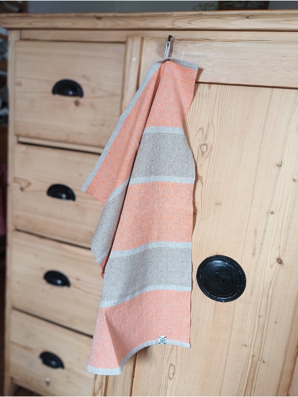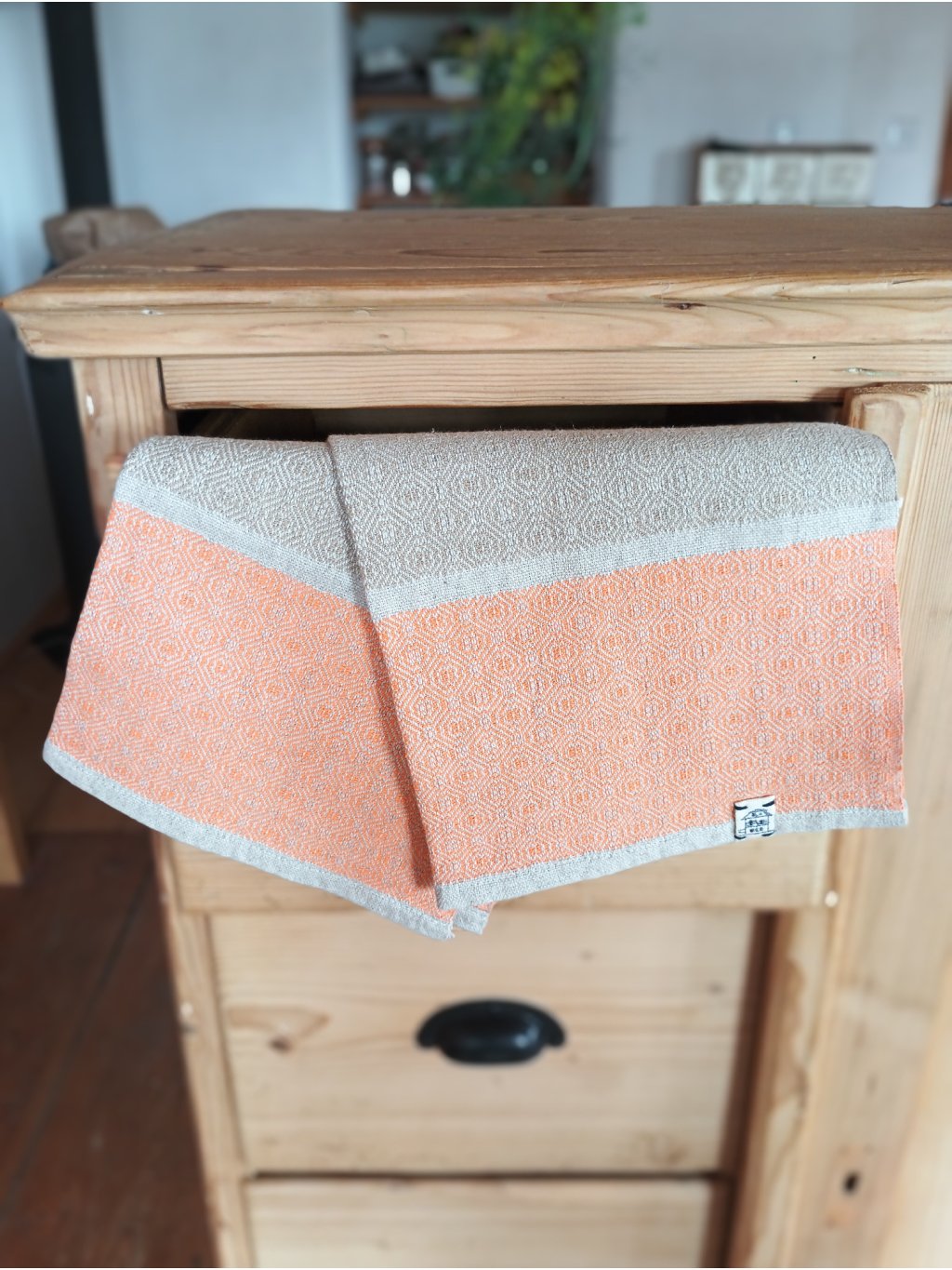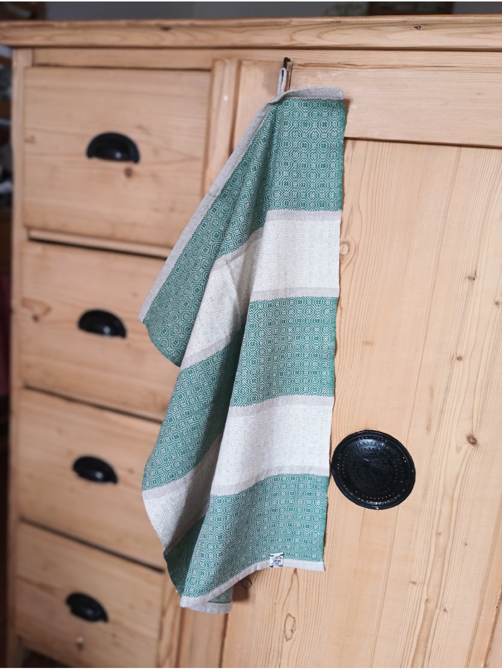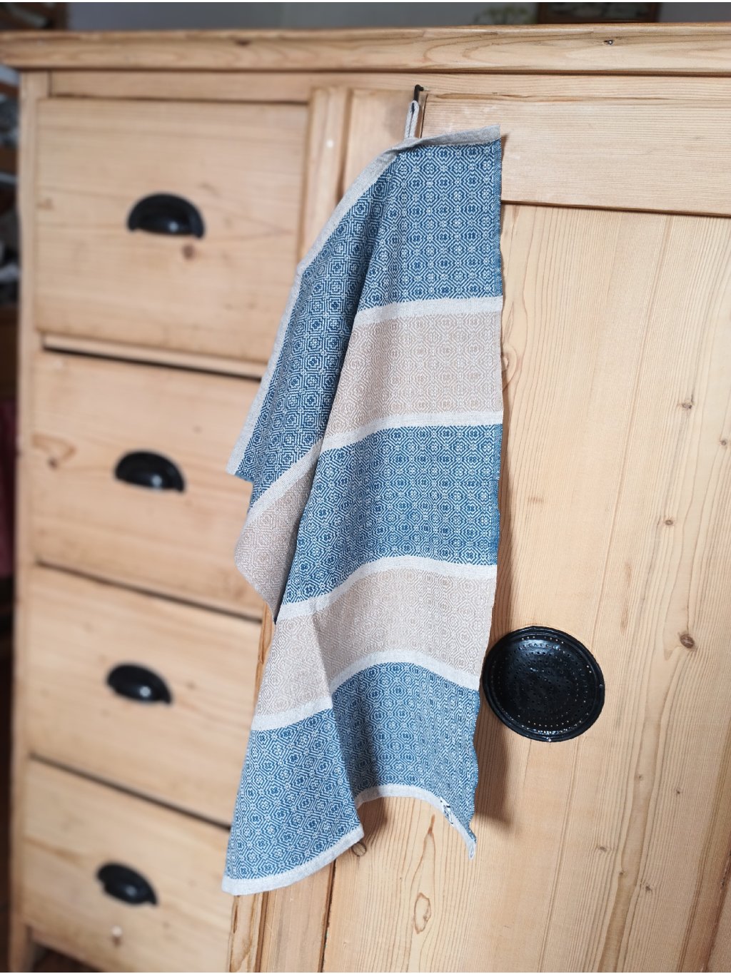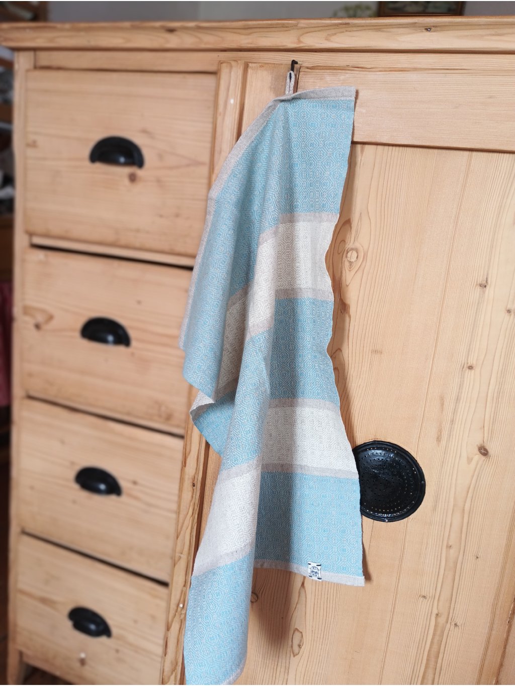 Použít se dá jako středový ubrus, dečka, nebo ručník, či utěrka na nádobí nebo na uchování domácího chleba. V rubové straně je schované poutko upletené ze stejné barvy. Vzor je v podstatě oboustranný, použitelný jak z lícu, tak z rubu. Použitý vzor je nadčasový i nadstylový, prostě se hodí všude.
