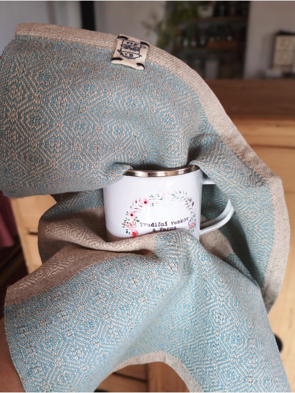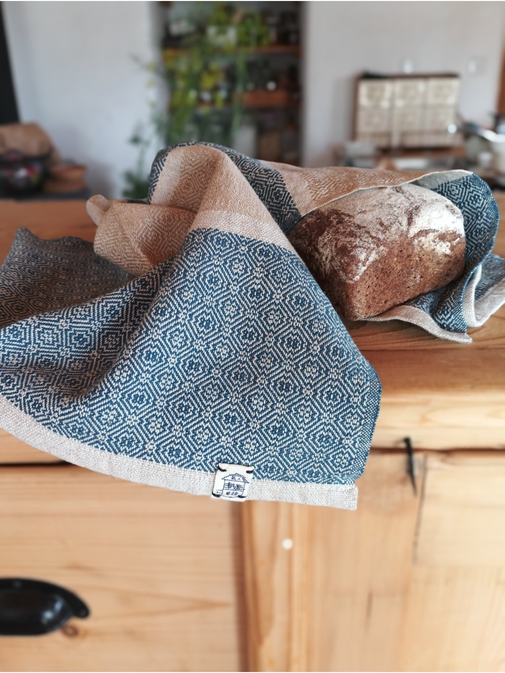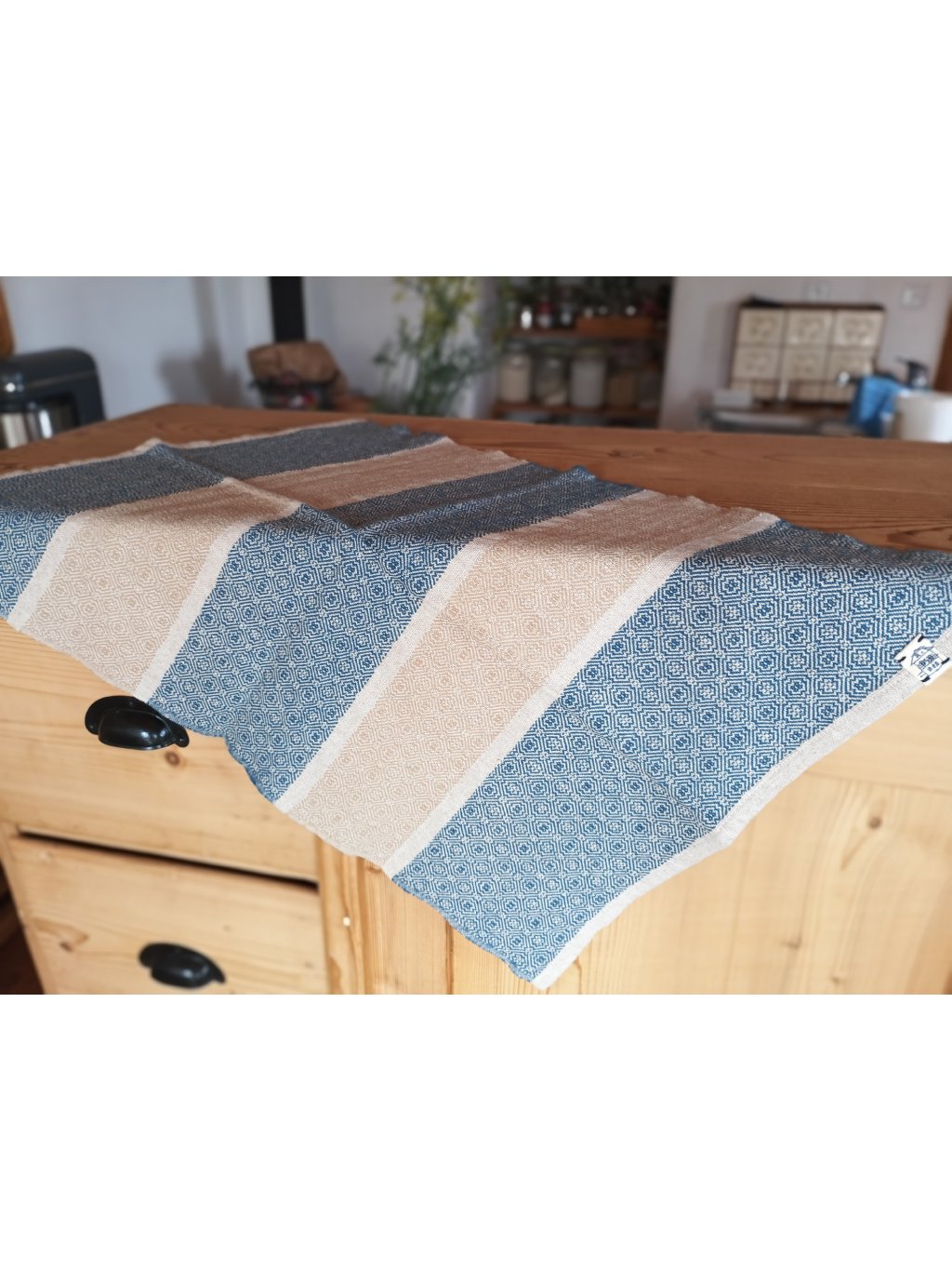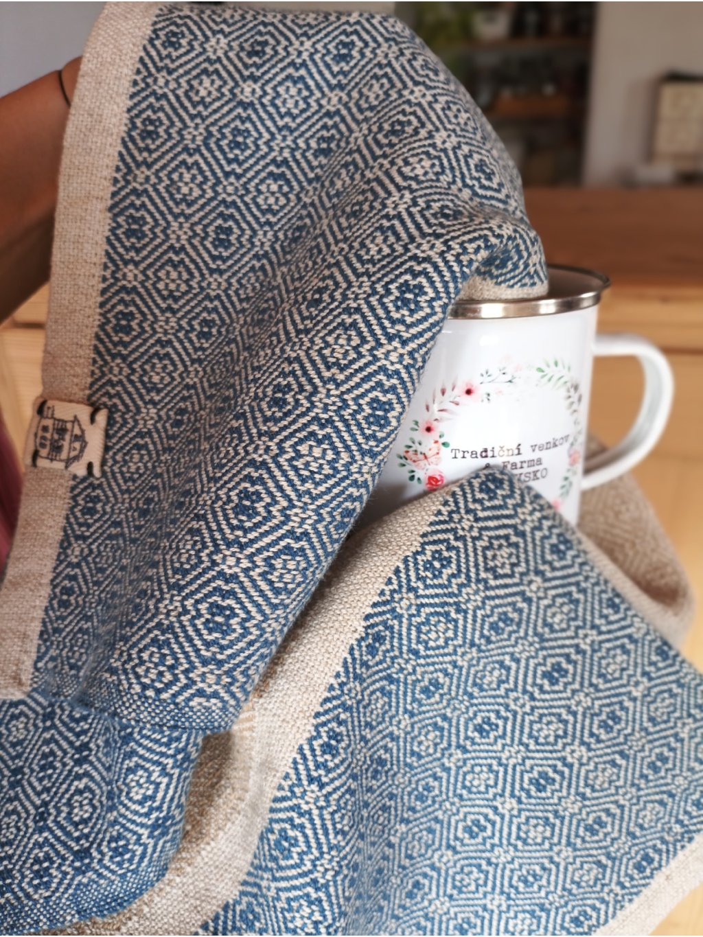 Ručně tkaný kousek bytového užitného i dekorativního textilu.