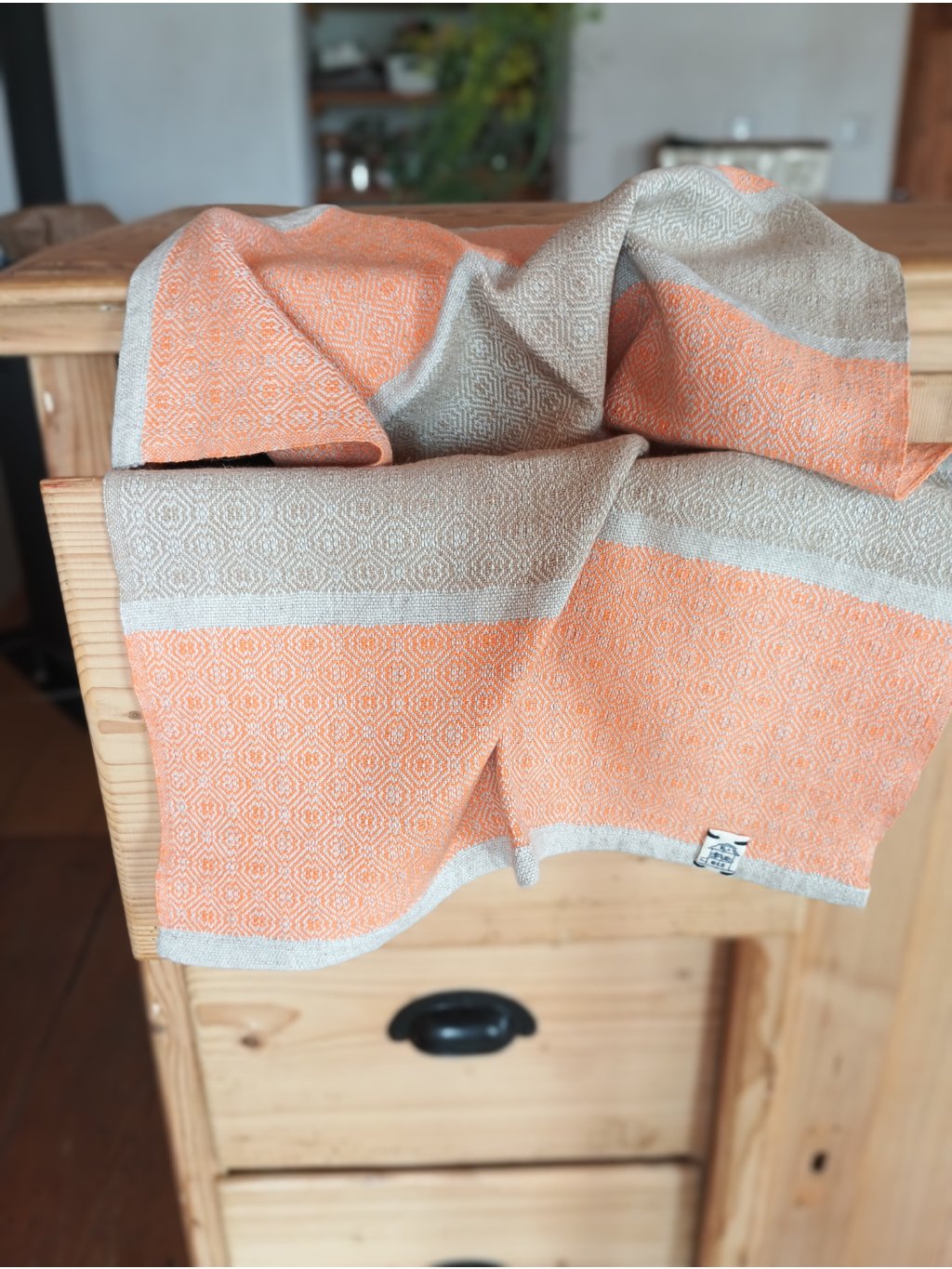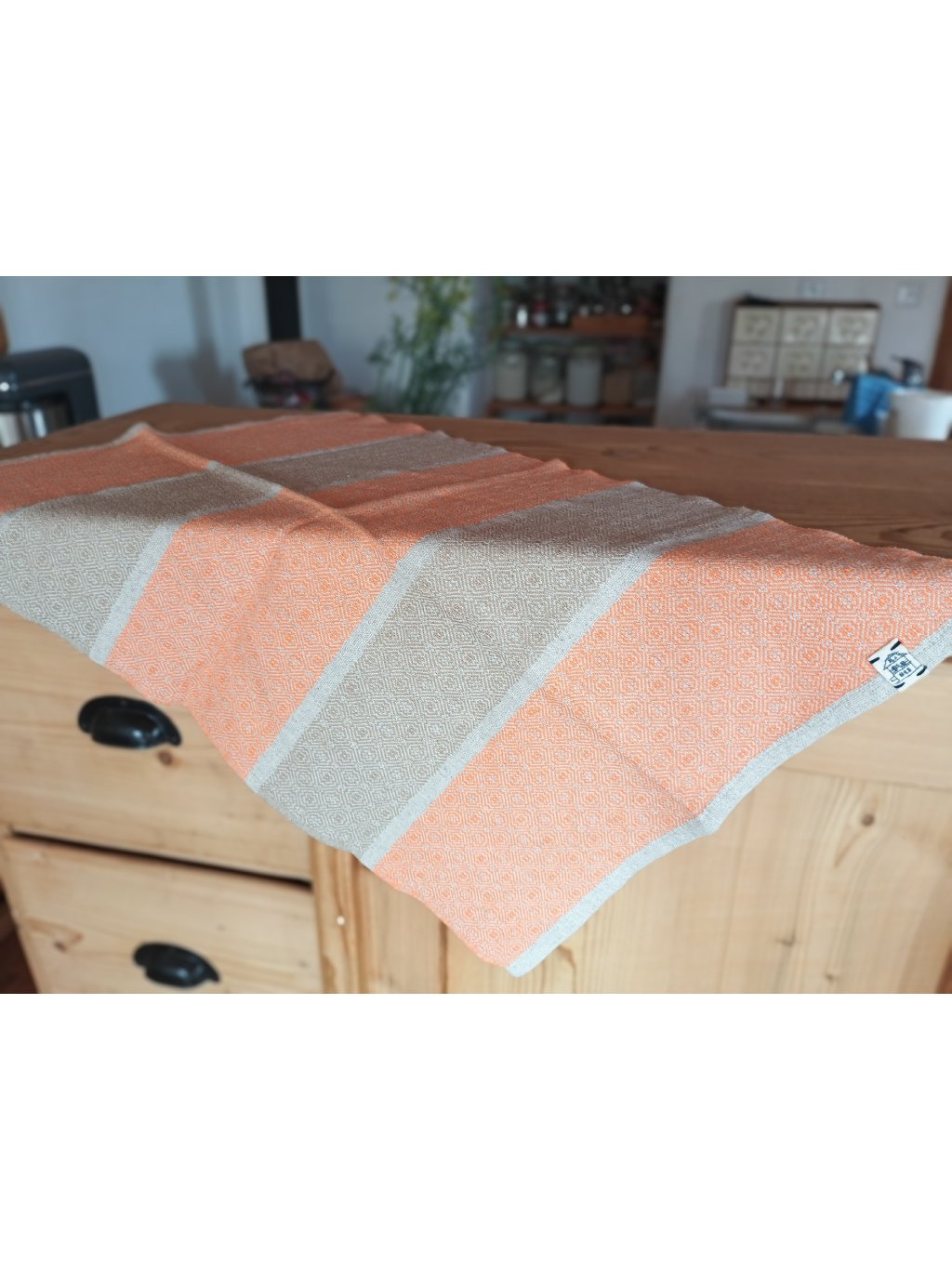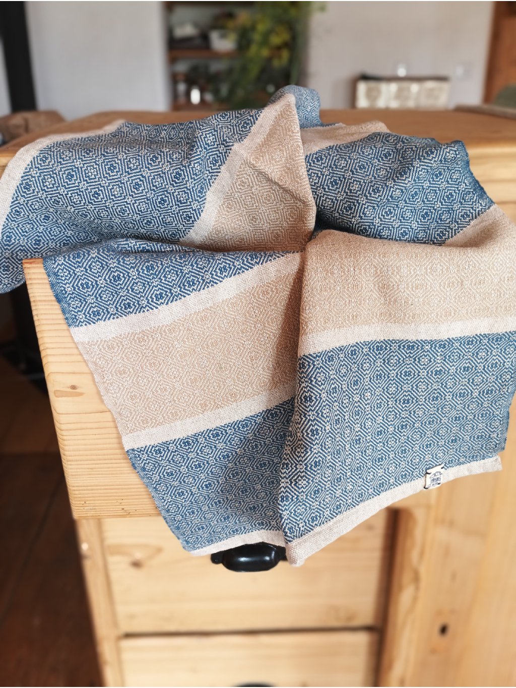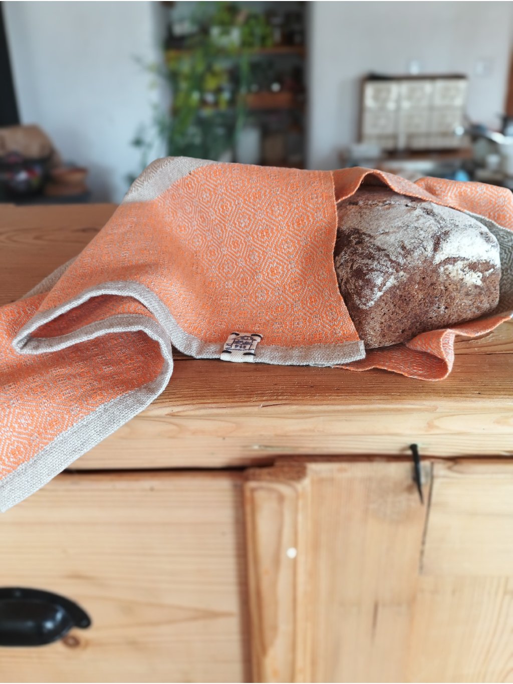 Ručně tkaný kousek bytového užitného i dekorativního textilu.